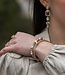 Deze twee armbandjes zijn zo’n duo dat je moeiteloos elke dag draagt. Geen poespas, wel precies genoeg detail om je outfit net wat leuker te maken. Het ene armbandje bestaat uit facetgeslepen kralen in bruin-, wit- en naturel tinten. Zacht van kleur, met een subtiele glans die mooi meebeweegt. Het andere armbandje is een elastische bangle met een lichte shimmer erin. Rustig, maar zeker niet saai.