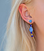 De oorbellen bestaan uit goudkleurige oorstekers met crystal stenen in mooie kleuren mix in lichtblauw en donkerblauw en met een druppel.
