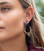 Wat deze oorbellen zo leuk maakt, is de mix van kleuren. Felblauw, groen, paars, rood en goud: het komt allemaal samen in één vrolijke earparty. Daardoor zijn ze supermakkelijk te combineren. Draag ze met een basic outfit en laat de oorbellen de show stelen, of mix ze met andere kleurrijke accessoires voor een echte boho vibe.