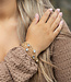Het is een armband die je dag meteen een stukje gezelliger maakt. Of je hem nu draagt tijdens een koffiedate met vriendinnen, een avondje uit of gewoon bij je favoriete jeans – hij past er altijd bij. De combinatie van goud en crystal zorgt voor een chique en toch speelse uitstraling, waardoor hij eigenlijk bij alles werkt.