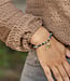 De kralen zijn subtiel blauwgrijs, waardoor hij makkelijk matcht met basically elke outfit. Of je nu een cozy trui aan hebt of een luchtig blousje — dit armbandje past er gewoon bij. De gouden bedeltjes geven ‘m nét dat beetje extra flair. Een beetje main character energy, maar dan met een knipoog.