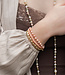 Sommige armbanden hebben gewoon alles en dit is er weer zo een. Met drie rijtjes kralen – nude, warm goud en een nude roze facet kralen – is dit sieraad een feestje om te dragen. Het is de perfecte balans tussen chic en speels.