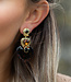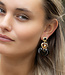 Deze oorbellen zijn niet gemaakt om stilletjes op de achtergrond te blijven. Met hun grote hartvorm, warme bruin en zwarttinten en gouden details zeggen ze meteen: hier gebeurt iets! Het glanzende middensteentje geeft een extra sparkle, terwijl de combinatie van goud en donkere accenten de oorbellen een rijke uitstraling geeft.