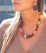 Het bijzondere aan deze ketting is dat hij moeiteloos bij heel veel outfits past. Draag hem bij een beige trui en hij versterkt die rustige, cozy look. Combineer hem met een zwarte jurk en de warme tinten springen er juist uit. Zelfs bij een simpele jeans met een witte blouse doet hij wonderen. Het is het soort sieraad dat zonder moeite van alledaags naar feestelijk gaat.