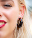 Fijne oorbellen die helemaal niet zo zwaar dragen doordat ze gemaakt zijn van resin. Het mooie van dit materiaal is dat geen enkele oorbel gelijk is. Elk stukje kan variëren in print en tint :) Dit maakt elke oorbel een beetje uniek. De resin is bruin gemeleerd.