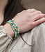 Er zijn twee verschillende soorten elastische armbandjes, los van elkaar verkrijgbaar. Het armbandje met de zeester heeft meteen dat zomerse detail waar je oog naartoe blijft gaan. Klein, maar precies aanwezig genoeg. De andere variant bestaat uit kralen in zeegroene tinten die rustig ogen en makkelijk combineren. Fris, licht en verrassend veelzijdig.Op de foto draagt ons model meerdere tegelijk maar ze zijn los verkrijgbaar.