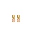 De oorbellen bestaan uit goudkleurige oorstekers met een mat geborstelde rechthoek met hieronder een mooie grote vierkante facet crystal steen in een mooie matte tint.