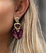 Deze oorbellen hebben een prachtige gouden basis met daaraan schitterende kristallen in verschillende paarstinten en in een hart vorm. Het resultaat? Een luxueuze look die perfect past bij zowel een casual jeans en blazer als een feestelijke jurk. Ze zijn opvallend genoeg om meteen de aandacht te trekken, maar ook verfijnd waardoor ze elke dag gedragen kunnen worden.