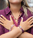 Als er één kleur is die dit seizoen je sieradencollectie verovert, dan is het wel aubergine paars. Voeg daar een vleugje roze aan toe en je hebt dé perfecte mix van trendy en vrouwelijk. En precies dat maakt deze nieuwe armband zo onweerstaanbaar.