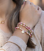 De armband draag je makkelijk om, dankzij het elastiek. Geen sluitingen, geen gepriegel. Gewoon aanschuiven en klaar. De mix van roze tinten maakt ’m verrassend goed te combineren: met een basic outfit, een lichte blouse of gewoon samen met andere armbandjes voor een gezellig stapeltje om je pols.