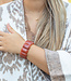 Maak een statement met deze stijlvolle armband in warme roodtinten. Perfect voor een cozy, chique look! Lees meer..