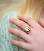 De ring is verstelbaar en kun je eenvoudig wat groter maken aan de achterkant. Als je wat dunnere vingers hebt is het ook heel leuk om deze juist om je middelvinger te dragen!
