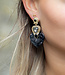 Deze oorbellen hebben een prachtige gouden basis met daaraan schitterende kristallen in verschillende zwart en grijstinten en in een hart vorm. Het resultaat? Een luxueuze look die perfect past bij zowel een casual jeans en blazer als een feestelijke jurk. Ze zijn opvallend genoeg om meteen de aandacht te trekken, maar ook verfijnd waardoor ze elke dag gedragen kunnen worden.