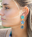 Soms heb je gewoon zin in een accessoire dat je dag vrolijker maakt. Deze blauwe bloemen oorbellen doen dat zonder moeite. Met drie bloemen onder elkaar, van fris turquoise tot diep zeeblauw, voelen ze bijna als een mini-bloemenveld dat je meeneemt naar zonnige dagen en vakantie vibes.