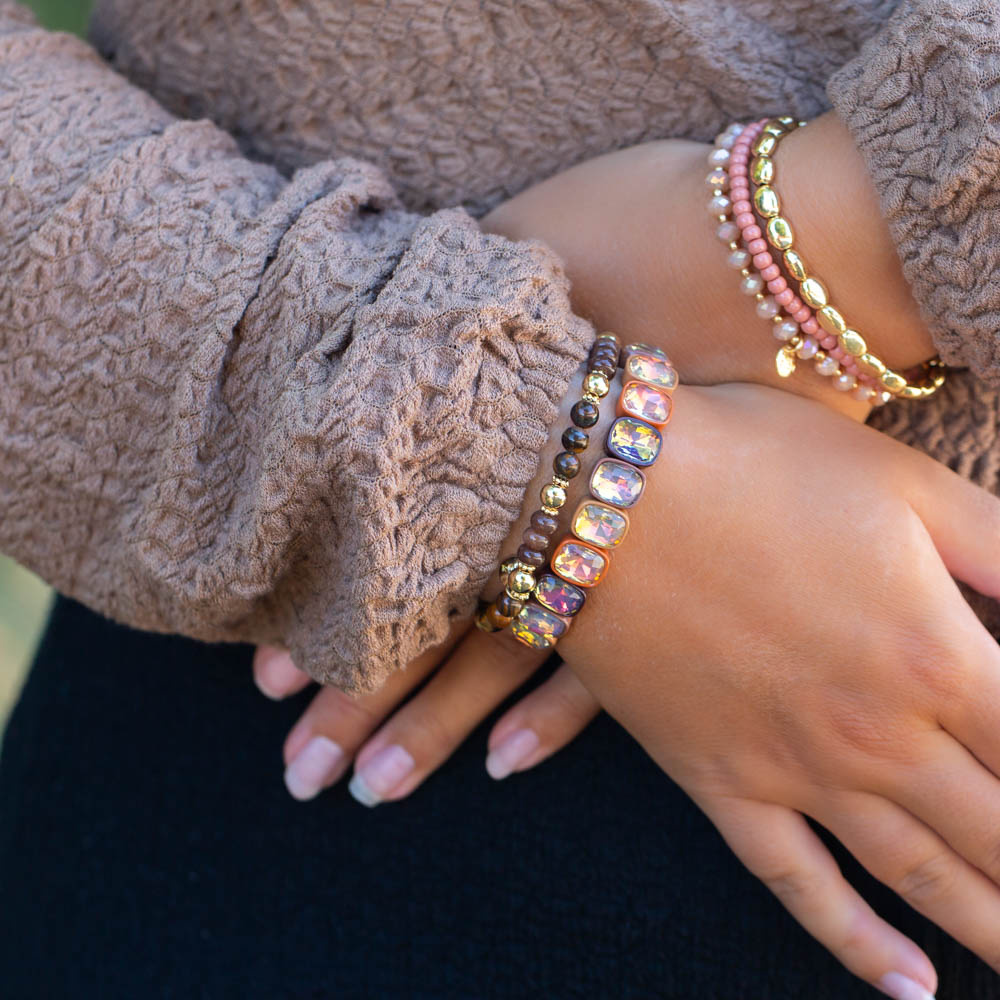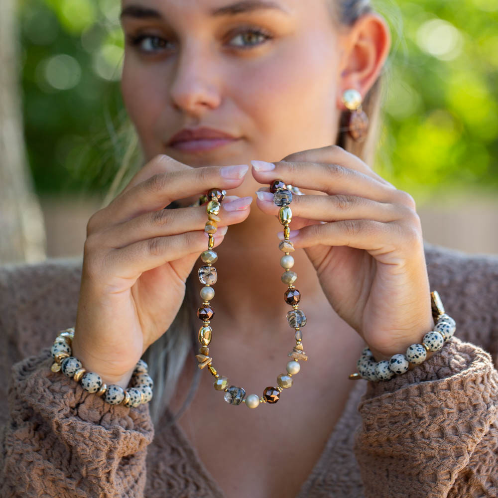 Geen seizoen zonder basiskleuren. Bruin en nude zijn dit jaar dé neutrale tinten die je overal mee kunt combineren. Vooral in sieraden zijn deze tinten perfect omdat ze de intensiteit van paars of roze verzachten. Een nude-kleurige armband met een gouden afwerking of een ketting met bruine kralen voelt meteen warm en natuurlijk aan. En het mooiste: ze passen letterlijk bij alles in je kledingkast.