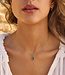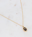 Een mooie, eenvoudige maar toch ook weer niet ketting. De ketting heeft een fijne schakel en onderaan een soort hanger in medaillon vorm. Ovaal met een bewerkt sierlijk randje. De binnenkant lijkt heel donker , richting zwart maar is stiekem echt nachtblauw
