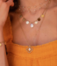 Hieronder een ketting met grotere platte parels en muntjes voor een mooi speels effect. We hebben deze twee kettingen gecombineerd met een ketting die een stuk langer is en je set compleet maakt. De ketting heeft een soort ruit hanger met witte ovaal schelp.