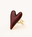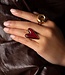 Soms zie je een ring en denk je: dit is geen sieraad, dit is een klein kunstwerk voor je hand. Deze grote rode ring in hartvorm is precies dat. Hij is opvallend, speels en toch elegant door de zachte glans van de steen. Het gouden randje maakt het geheel nog net iets warmer en zorgt ervoor dat dit hart meteen in het oog springt.