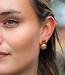 Chique en speels. Soms wil je een oorbel die niet alleen chique oogt, maar ook iets speels heeft. Deze cuties combineren een sprankelende bruine facet crystal steen met een gouden bol, die je look net dat beetje extra geven, zonder meteen teveel op te vallen.