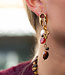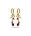 Het design is speels! De steker op het oor is een open ovaal, daaronder hangen verschillende bedels. De combinatie van glanzend goud, zachte parel en het warme rood-bruin tinten maken deze oorbellen veelzijdig.
