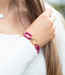 De armband bestaat uit ovaal roze lichtgewicht acryl links gecombineerd met stainles ssteel ringen, schakels.