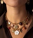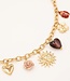En dan de tweede ketting… iets stoerder, maar net zo vol van karakter. Ook hier speelt goud de hoofdrol, afgewisseld met charmante hartjes, een stralende zon en diepe warme tinten. Draag je beide kettingen tegelijk? Dan krijg je die echte layered look waar je niet omheen kunt. Dubbel zoveel bedels, dubbel zoveel fun.