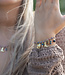 Geknoopt blauw touw, vol met kleurrijke kralen en glimmende details. Een blauwe kraal, een vrolijke hanger, een gouden detail dat je meteen een western-vibe geeft. Vooral die laars: een subtiele knipoog die je outfit net dat beetje extra pit geeft.