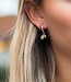 Deze oorbellen zijn een feestje om te zien! Het oorringetje bestaat uit glitter steentjes. Leuk als je een beetje wilt schitteren. Aan het ringetje hangen 2 bedeltjes. Een pareltje, klassiek maar ook zeker van nu. En een goudkleurig ovaal bolletje. Samen maken ze de oorbel speels.