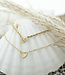 Op deze foto hebben wij twee kettingen gecombineerd. De onderste ketting is wat langer waardoor je ze ook heel mooi samen kunt dragen en kunt layeren. De ketting heeft een open hartje in het midden en de ene zijde is glad en de andere zijde heeft bolletjes, mooi subtiel.
