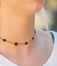 De nieuwe collectie van Go Dutch Label is weer uit! Deze goudkleurige ketting is versierd met allemaal bloemen van zwarte kralen.