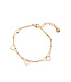 Onderste armband: Een dubbele armband met bolletjes en hartjes tussendoot, meteen een gevulde pols!