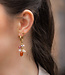 Deze oorbellen zijn er zo eentje waar je meteen blij van wordt. Goudkleurige oorringen met een verzameling leuke bedels in warme oranje- en rozetinten: vrolijk, zacht en perfect voor elke dag waarop je outfit wel wat extra’s kan gebruiken.