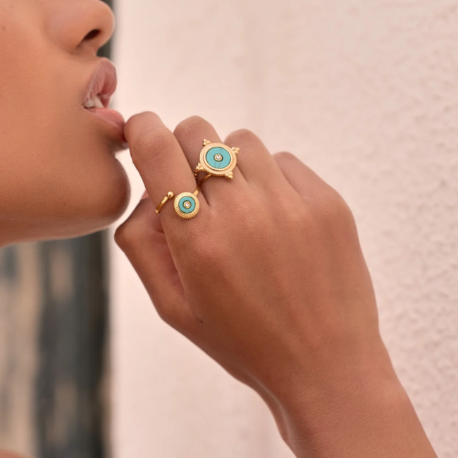 Wij hebben nu voor jou deze 2 mooie turquoise kleurige ringen van stainless steel. Je kunt kiezen uit een ring met ronde grotere steen en klein lief sparkle crystal steentje of een wat ongewonere ringmet ronde setting en bolletje open aan de voorkant!