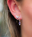 Oorbellen die nét even anders zijn. Niet één paar, maar twee verschillende stijlen die elkaar perfect aanvullen. En ja hoor, we hebben het over deze zilveren beauties van Karma. Voorin een elegante oorring cq creool met een glanzende paarse druppel en onderaan drie mini-zirconia steentjes. Subtiel? Zeker. Saai? Geen moment.