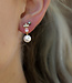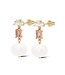 De combinatie van goudkleurig met een zachte zalmroze steen en klassieke parel is een feestje voor je oren — letterlijk én figuurlijk. Die subtiele sparkle bovenin vangt het licht (en de aandacht), terwijl de parel onderaan alles net dat tikkie chique geeft. Maar dan wel met een knipoog, want ze zijn zeker niet tuttig.