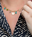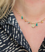 Dan hebben wij een leuk alternatief voor jou! Een goudkleurige schakelketting met superleuke extra details eraan. Aan de ketting hangen muntjes, steentjes en kwastjes in groen tinten
