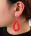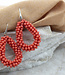 De oorbel bestaat uit een oorsteker met hieronder een grote druppel van allemaal kleine kralen in een hele mooie koraalrode tint