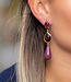 De oorbellen zijn opgebouwd uit drie mooie elementen: een druppel op het oor, een paarse kristal in het midden en onderaan een dromerige druppel in een warme paarse kleur. Samen vormt dit een kleurenpalet dat je letterlijk overal bij kunt dragen. Van een basic jeans met blouse tot een romantische jurk – deze oorbellen zorgen ervoor dat je outfit altijd “af” voelt.