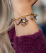 De gouden schakels geven de armband een chique touch, terwijl de speelse bedels precies dat vleugje fun toevoegen dat je nodig hebt om je outfit tot leven te brengen. Of je nu me-time hebt en gezellig een kop koffie aan het drinken bent of op kantoor je toetsenbord laat ratelen, deze armband zorgt dat je pols nooit saai is.