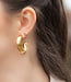 De goudkleurige oorbellen zijn gemaakt van stainless steel. Je hoeft dus niet bang te zijn dat de sieraden snel gaan roesten. En dankzij dit mooie materiaal zijn de oorbellen ook nog eens fijn voor je oren.
