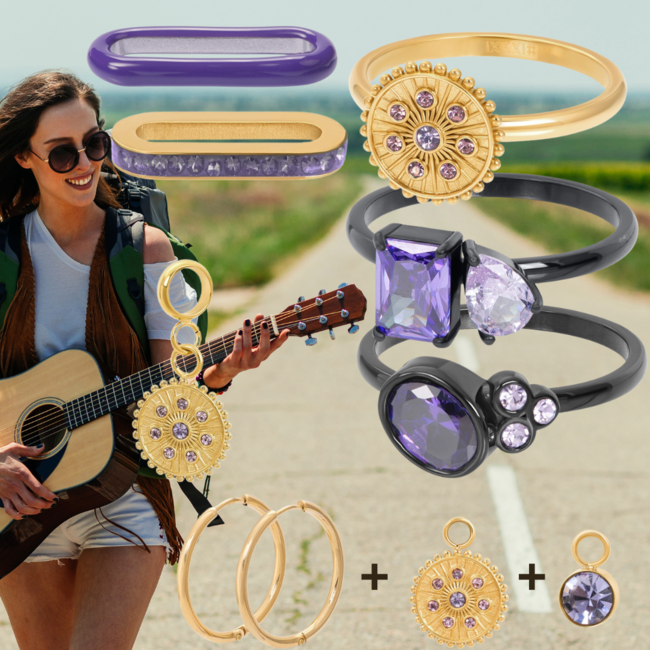 Onze harten collectie blijft zich uitbreiden! Lekker opvallen met deze grote oorbellen in goud en paars.