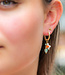 De goudkleurige creool heeft een subtiel hamerslag reliëf en daaronder bungelen allerlei kleine eyecatchers: glanzende steentjes, kraaltjes en een bloemachtig detail. Alles beweegt vrolijk mee met jouw every move – perfect voor dansjes op het strand of gewoon een koffiedate in de zon.