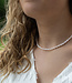 Zacht glanzende parels, subtiel van formaat en perfect geregen tot een elegante choker die nét boven je sleutelbeen valt. Geen ouderwetse vibes hier – dit is klassiek met een moderne twist. Combineer ’m met een basic blouse voor een chique werkdag of juist met een luchtige jurk en messy beach waves voor een laid-back zomerdag. Hij kan alles. Echt alles.