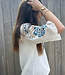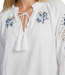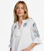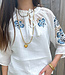 Prachtige witte blouse met blauwe opdruk mouwen