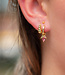Deze Karma oorbellen zijn allesbehalve standaard. De voorste creool steelt de show met een speelse hanger in blaadjesvorm in zachte tinten roze, champagne en groen. Subtiel glinsterend, lekker vrolijk en nét even anders. Het soort oorbel waar je spontaan goede zin van krijgt.