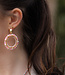 De oorbel heeft een goudkleurige steker op het oor. In de cirkel zijn ook goudkluerige bolletjes verwerkt. Het geeft de oorbel net even dat chiquere effect.