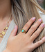 Dit ontwerp is fijn, vrouwelijk en toch opvallend genoeg om je outfit nét dat leuke extraatje te geven. Het geheim? De prachtige natuursteen in het midden. Die zachte, frisse kleur geeft direct een rustige maar chique uitstraling — ideaal voor elke dag, maar ook perfect voor een avondje uit waarbij je je innerlijke glamour-queen rustig wilt laten meegenieten.