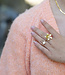 Dan hebben we haar flamboyante BFF: de grote bloemring. Met goudkleurige blaadjes en een shiny uitstraling schreeuwt deze ring: “Hey, kijk naar mij!” Perfect voor een festival, tuinfeest of gewoon om je maandag minder maandagig te maken.