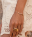 Hoe mooi is deze gouden armband met witte parels. De armband oogt heel fijntjes en vrouwelijk!