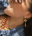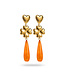 Deze oorbellen zijn alles wat je nodig hebt voor instant vrolijkheid. Goudkleurige harten, klavers én een juicy oranje druppel als knallende afsluiter. Ze zijn als een feestje, maar dan zonder kater.
